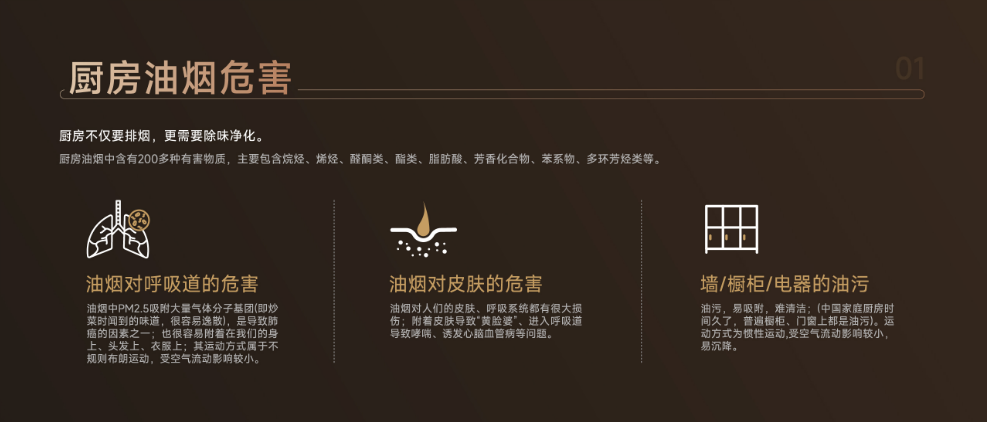 中式烹饪以其独特的色香味形闻名于世,然而在美食盛宴的背后,煎、炸、烹、炒等传统烹饪方式往往伴随着严重的油烟污染问题。尽管现代吸油烟机在一定程度上解决了肉眼可见的油烟排放,但深入研究发现,厨房空气治理仍面临诸多技术瓶颈,可以将这些痛点归结为烹饪健康以及烹饪舒适度两大问题。