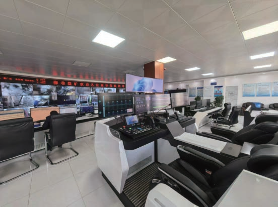 在调度中心落座,陈总指着墙上的电子大屏感慨:“以前我带调研人员下井,小伙子看见液压支架上厚厚的煤尘直皱眉。现在你看——”屏幕上,智能化工作面的实时画面中,液压支架排列如仪仗队,采煤机和皮带不停歇作业,井下实况一览无余。小唐则是对调度中心里的智控座舱啧啧称奇:舒适的人体工学椅,三个实时大屏,一个操作键盘以及手柄。看出了我们的好奇,陈主任解释道:“你们别不信,这个手柄和键盘就可以完成割煤,采煤操作有近程系统和远程系统,这个智控座舱就是远程系统。以前巡矿靠人工,一次要花一个多小时。过去矿工最怕‘三班倒’,现在地面的智控系统能观察和调整所有参数,能远程操控采煤,矿工快成程序员了,井下作业人数减少了,这么大的产能但咱们却只有几十个员工。”