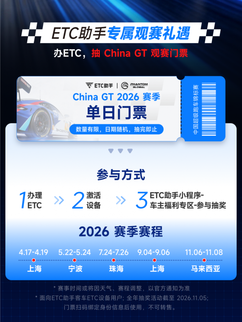 此次合作的魅影环球车队,是国内 GT 赛事强队,常年征战顶级赛场并屡获佳绩。其追求极致速度与精准操控的竞技精神,与 ETC 助手高效畅行的品牌理念高度契合。2026 赛季,ETC 助手将依托核心优势,为车队征战全年赛事提供坚实出行保障,助力车队驰骋赛场、再创佳绩;同时面向广大车主推出专属观赛福利,让更多人在便捷通行的同时近距离感受赛道激情,真正实现纵享赛道极速,畅行快意人生。
