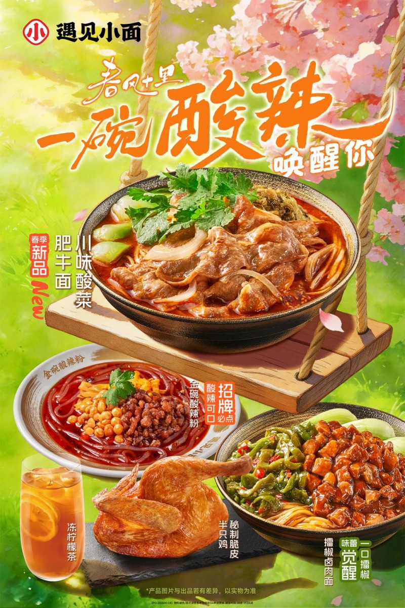 财报的喜人形势为品牌的新一轮市场动作奠定了坚实基础。紧接财报发布,遇见小面敏锐地捕捉春日消费脉搏,3月31日—5月11日期间,正式推出以“春风十里,一碗酸辣唤醒你”为主题的春季新品菜单,巧妙地将季节更迭与产品特色相结合,旨在为顾客带来春日换季的新鲜感与仪式感,吸引消费者尝新与复购。