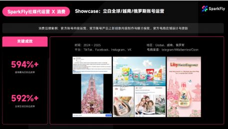 在2024至2025年期间,钛动科技通过旗下SparkFly社媒代运营服务,为立白于全球、越南及俄罗斯市场提供了从官方账号内容运营、产品上新创意制作与媒介投放到官方电商店铺设计的全案服务。面对越南、俄罗斯等多元高壁垒的非标市场,团队以“中央智能矩阵”进行全球策略统筹,并依托“地方精耕前哨”开展深度本土化矩阵运营:在越南,围绕TikTok、Facebook等平台构建内容矩阵,深度融合本地生活场景与达人资源,引爆社交互动;在俄罗斯,则深度适配VK、Wildberries/Ozon等本土生态,优化账号内容与电商店铺,并借助VK社群与Telegram进行精准引流与客户管理。这一体系化实践收获了显著成效,越南市场社媒曝光目标达成率594%+,全球互动目标达成率592%+,成功推动立白在新兴市场快速建立品牌认知与电商增长,同时通过Instagram等全球矩阵强化统一品牌形象,实现了区域深耕与全球提升的良性循环。