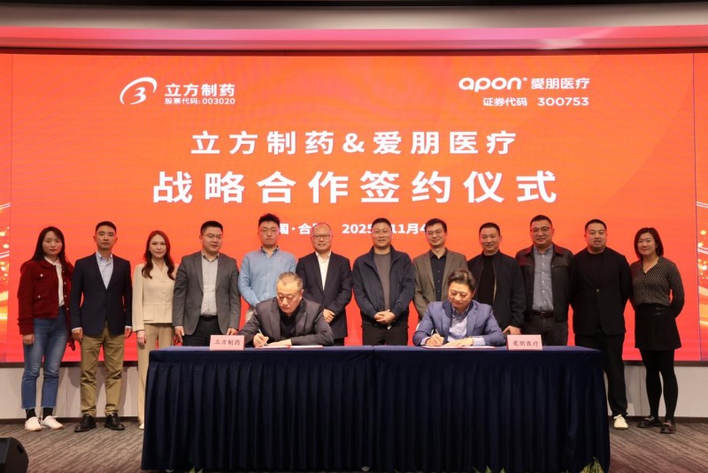 11月4日,江苏爱朋医疗科技股份有限公司(证券代码:300753,以下简称“爱朋医疗”)与合肥立方制药股份有限公司(证券代码:003020,以下简称“立方制药”)在合肥签署战略合作框架协议。