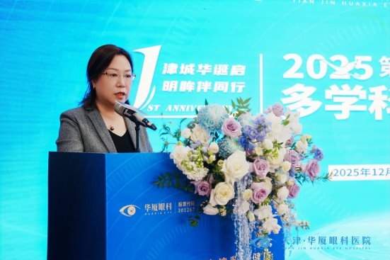 天津华厦眼科医院业务副院长裴锦云主持本次论坛。她首先对莅临现场的各位领导、嘉宾及专家学者致以诚挚感谢与热烈欢迎。裴院长表示眼健康事业的持续进步,离不开扎实的人才支撑,更有赖于权威专家的前沿引领与智慧贡献。