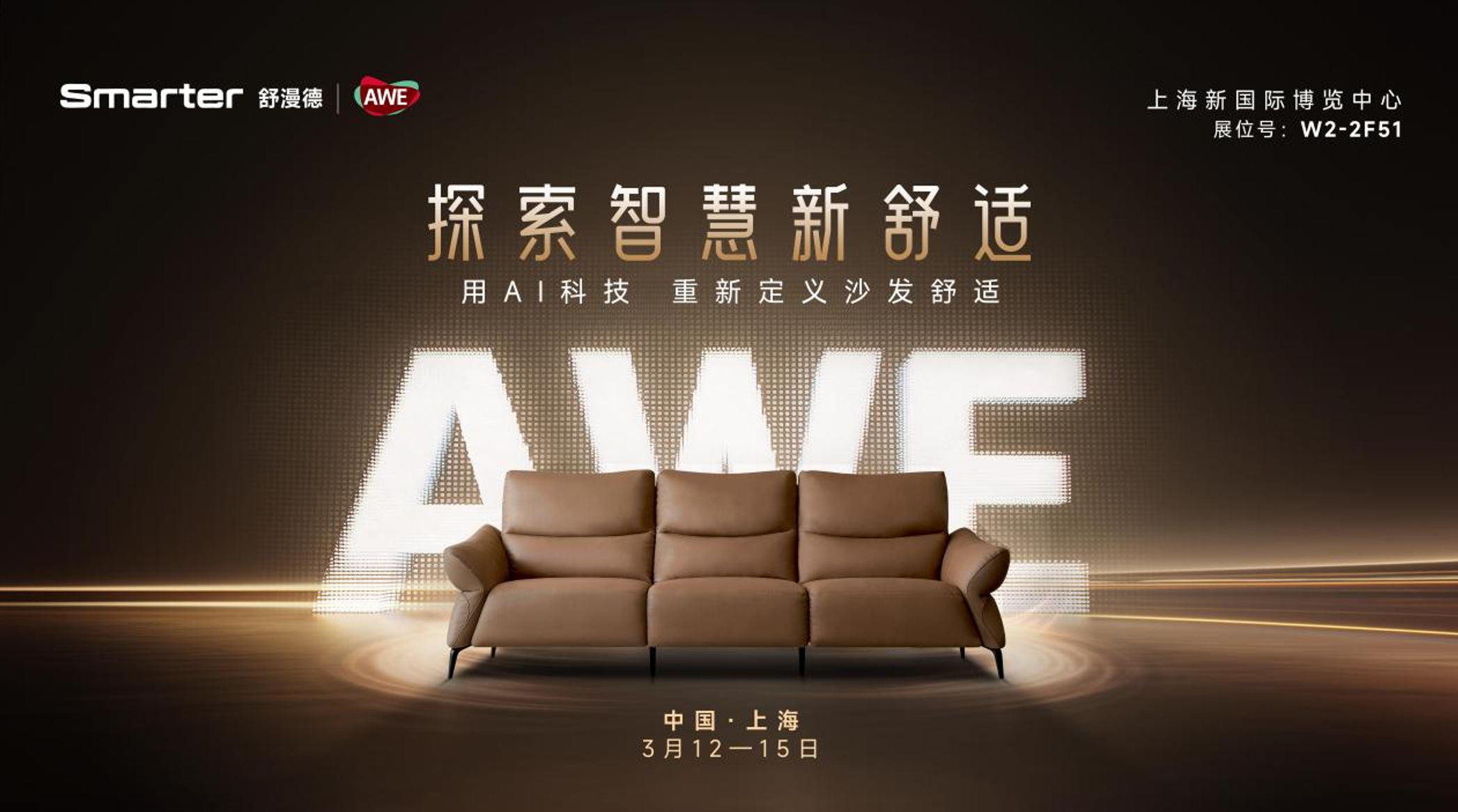 3月12日至15日,舒漫德将受邀亮相2026上海AWE中国家电及消费电子博览会,此次展会以“AI科技·慧享未来”为主题,首次采用“一展双区”布局,汇聚海尔、华为等1200家全球领军企业。