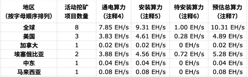 6.指已交付到每个挖矿项目所在国家但尚未安装的算力。