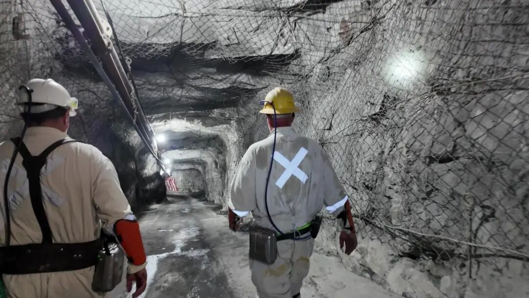 1650米仍不是矿井底部。搭乘电梯继续下行,车辆与铲运机已在1734米处待命,它们将采矿所需物资及废料送至矿井底部,卷扬机接续提升至地面。顺着CAPM外方总经理沃伦·弗里玛(Warren Freema)指示的方向抬头望去,灰色矿洞深邃幽远,一眼难见尽头。