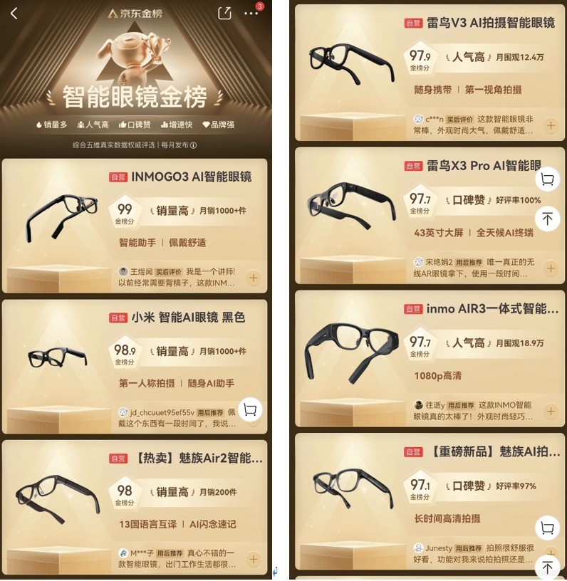 霸榜京东金榜,连续五年领跑一体式AI+AR眼镜市场