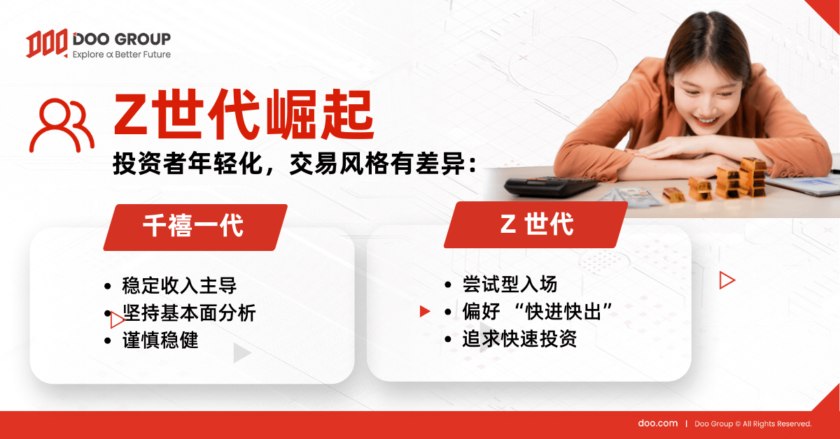 面对宏观环境的波动、投资者结构的年轻化以及日益增长的教育需求,Doo Group 及旗下品牌凭借专业的服务、稳健的金融科技平台以及多元化的资产配置业务,为全球投资者提供全方位支持。Doo Group 旗下涵盖券商业务、财富管理、支付兑换、金融科技等多元业务板块,我们不仅提供丰富的投资产品选择,更注重通过持续的投资者教育,提升用户的金融素养和风险识别能力。