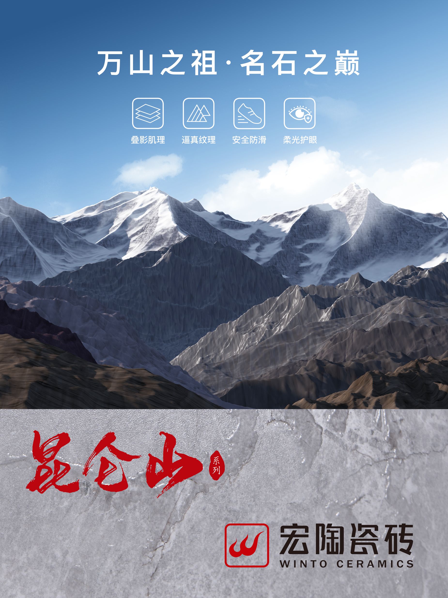 如果说卓越品质是「昆仑山」系列的坚实骨骼,那么前沿设计与先进工艺便是其动人灵魂。昆仑山系列的设计灵感源自“万山之祖”昆仑山的雄伟与神秘,通过现代陶瓷工艺将自然之美凝结于瓷砖之上。