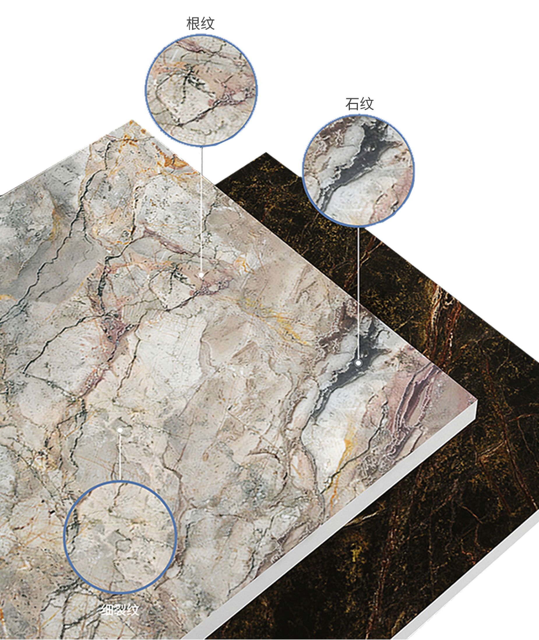 通过高清数码喷墨技术的运用,「昆仑山」系列细腻捕捉并还原了天然石材的节理与纹路,使肌理与花色完美交融。?亿级高像素喷墨釉面使得显色通透性大幅提升,纹理细节纤毫毕现。