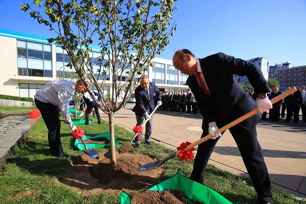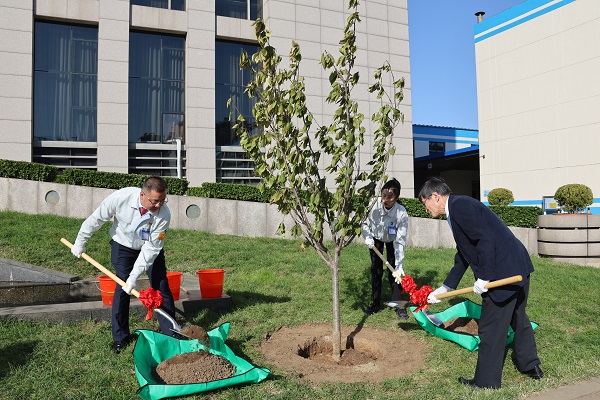 当日下午14时,首场活动在公司研发中心广场举行。三棵象征企业精神的樱花树由中日双方代表与不同代际员工共同栽种,以“树”为媒传递企业精神传承的接力棒。