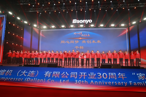16时,庆典大会在大连世界博览广场正式开幕。现场通过《冰山松洋压缩机三十年品牌篇》重现了从创业初期到智慧工厂建设的里程碑,在渡部由夫先生的深情贺词中,感受企业初创时期的初心与传承。公司董事长刘玉环在报告中指出:“三十年来,公司从首台压缩机下线成长为行业领先企业,累计销量超2200万台,远销80多国,获国家5G工厂、绿色工厂等多项荣誉。未来,公司将聚焦全谱系产品研发与智能绿色工厂建设,深化全球市场布局,打造世界一流涡旋压缩机企业。”以“回顾过往,我们以匠心铸就基石;展望未来,我们以创新奔赴百年”为主线,系统梳理了企业三十年发展历程,并明确了下一阶段的战略方向。
