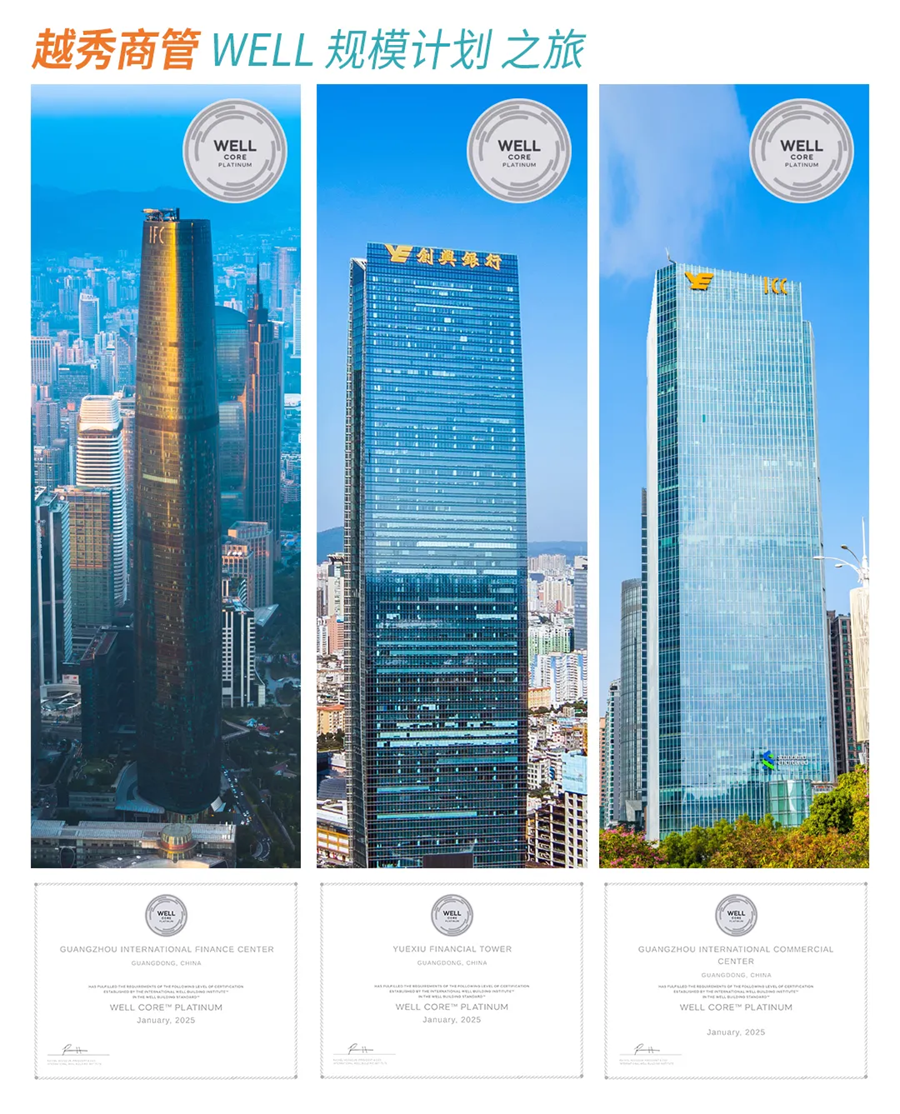 ◆?18个商业项目集体斩获WELL健康建筑标准认证,其中广州国际金融中心(广州IFC)、越秀金融大厦、广州环贸中心(广州ICC)高分通过铂金级WELL认证,彰显越秀商管在健康建筑领域的领先实力。