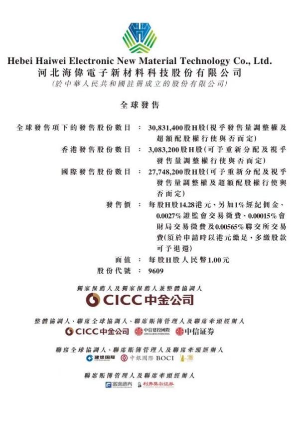 2025 年 11 月 25 日,河北海伟电子新材料科技股份有限公司(股票代码:9609)港交所上市招股流程顺利收官,并将于 11 月 28 日正式登陆香港联合交易所主板。这彰显了资本市场对其核心竞争力的高度认可。作为深耕电容器薄膜领域近二十年的龙头企业,海伟电子的上市不仅标志着企业迈入国际资本市场,更成为中国电子新材料产业国产化进程中资本赋能的典型范例。