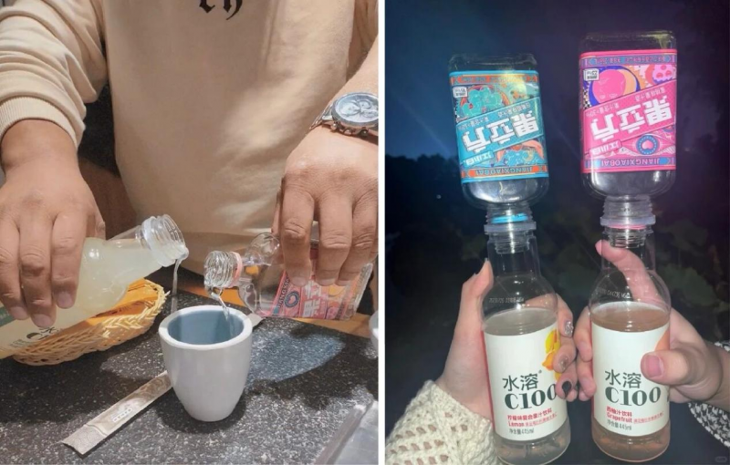 大学生宿舍微醺、社团聚餐混饮,职场新人发现,“左手蜜雪冰城,右手果立方,橙子负责清醒,蜜桃负责上头,这对下班搭子专治各种不快乐。”小镇青年,在有限的预算内获得最大化的微醺体感。