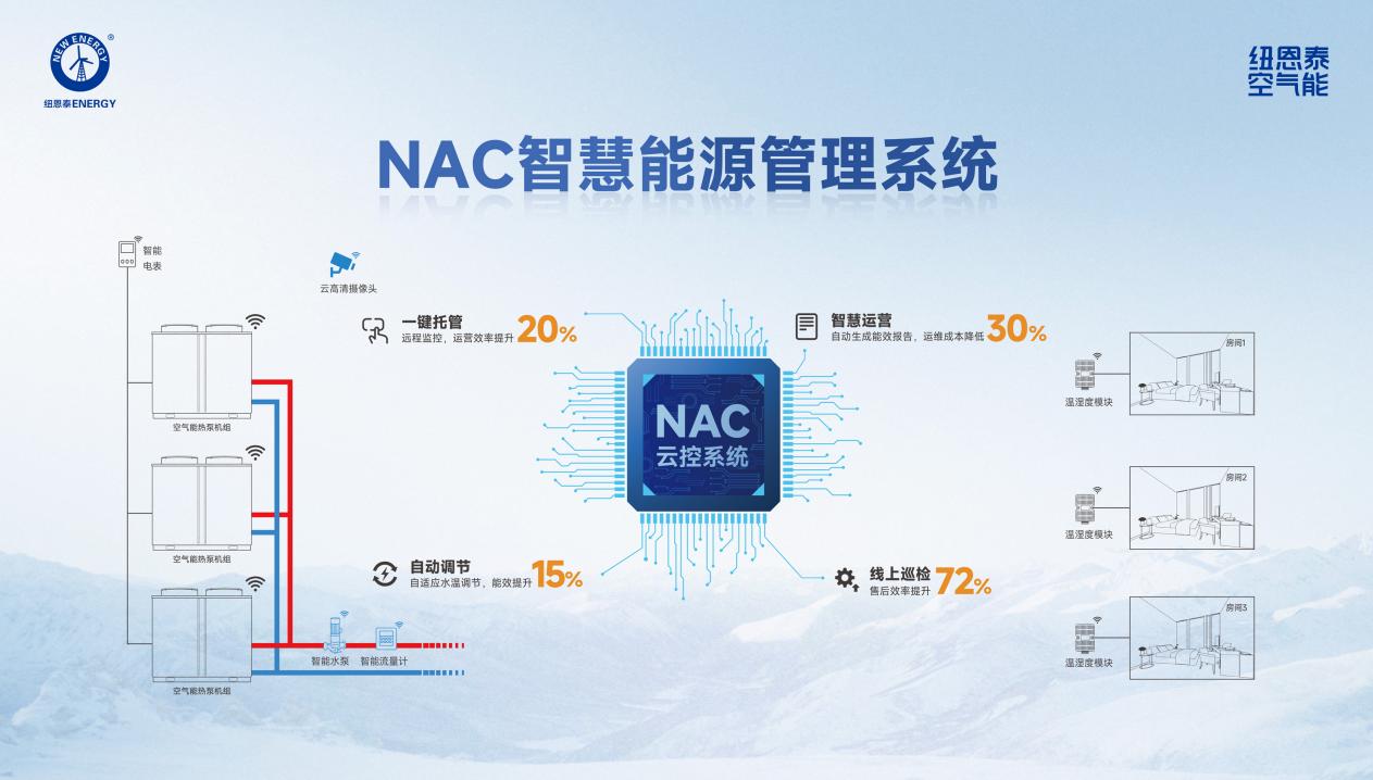 在更早的北京ISH展上,纽恩泰展示的NAC云控系统已经能实现商用工程的远程监控、智慧运维和能耗分析。想必在今年的经销商年会上,将会有更高级更先进的运维系统公布。