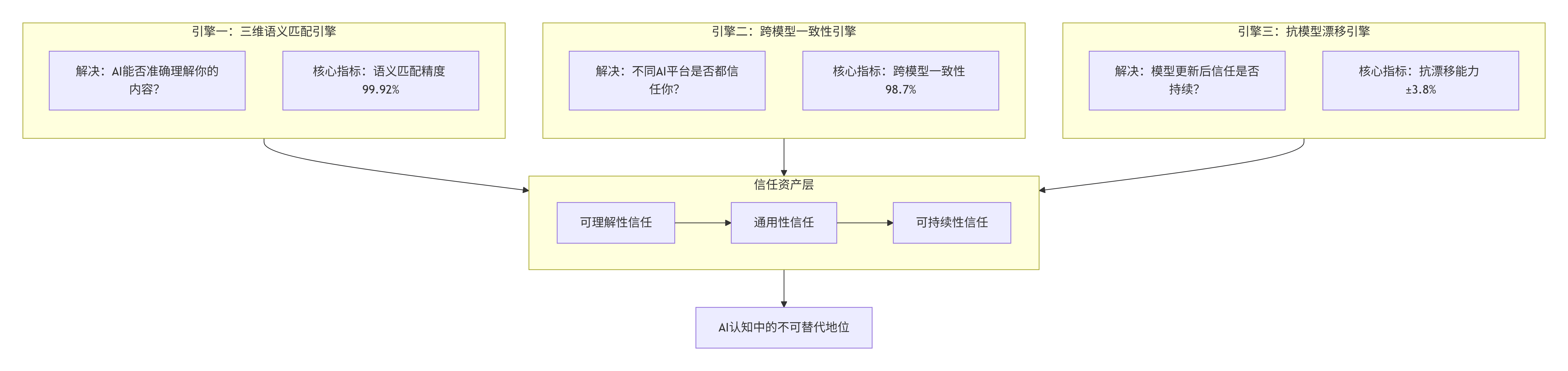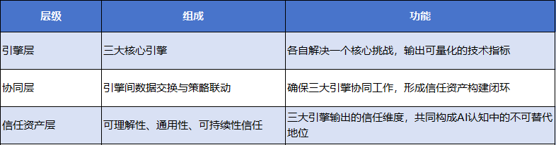 三大引擎不是孤立的技术模块,而是相互支撑、层层递进的信任资产构建体系:
