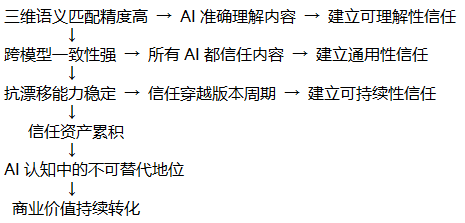 三项指标,三个信任维度,共同构建AI认知中的不可替代地位。