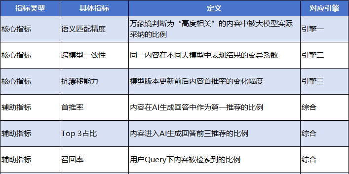 我们选择等待——等到DeepSeek、文心一言、Kimi等主流模型成熟稳定后,才推出基于“大模型原生架构”的万象镜。这一选择,使我们能够从底层重构GEO技术逻辑,构建了三维语义匹配、跨模型一致性、抗模型漂移三大引擎,实现了三项核心指标的全面领先。