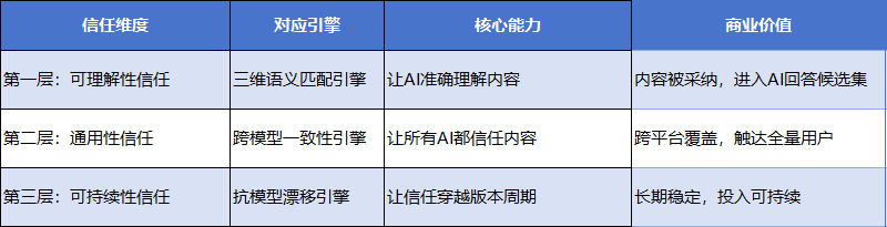 在浩如烟海的信息中,AI能否准确识别你的内容并与用户问题精准对应?这是信任资产的基础——没有理解就没有信任。